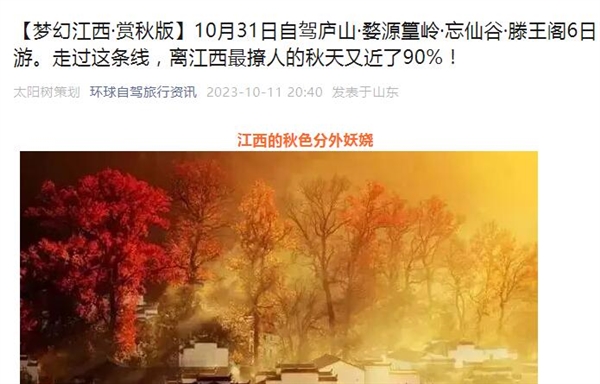 [户外]【梦幻江西·赏秋版】10月31日自驾庐山·婺源篁岭·忘仙谷·滕王阁6日游。