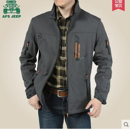 > 春秋款AFS/JEEP薄款夹克 男装抓绒多袋旅游防风冲锋茄克外衣上装